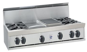 BlueStar 48" Gas Rangetop-Stainless Steel with full motion grates, ULTRANOVA™ and 24" charbroilerRead More