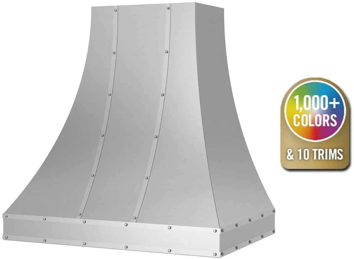 Metals & Strapping: Change your hood material from stainless steel to 14 different custom metals options including brass and copper. Plus, enhance your ventilation hood design by adding custom strapping and rivets to compliment other finishes in your kitchen.