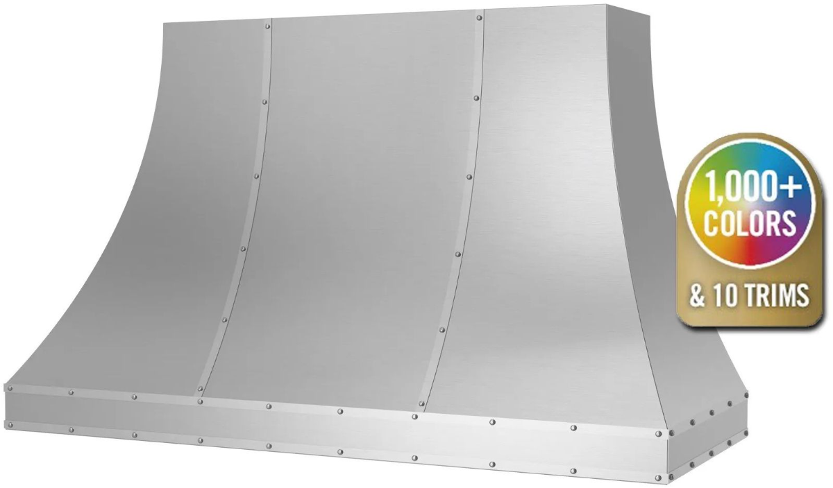 Metals & Strapping: Change your hood material from stainless steel to 14 different custom metals options including brass and copper. Plus, enhance your ventilation hood design by adding custom strapping and rivets to compliment other finishes in your kitchen.