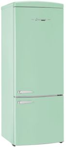 Discover nostalgia with the 17 cu. ft. Classic Retro Bottom Mount Fridge, featuring chrome accent handles and adjustable glass shelves. Energy Star Certified for efficiency, it includes a digital control panel, LED display, wine rack, integrated ice trays, and frost-free operation for ultimate convenience. Economy and Super Freeze Modes lock in freshness, while the door alarm, freezer drawers, and humidity control crispers protect produce and ensure seam-less performance.Read More
